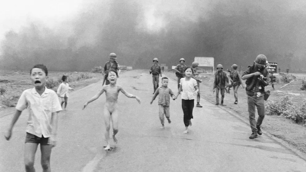 En la instantánea se aprecia en el centro a una niña desnuda, Phan Thi Kim Phúc, que corre llorando con quemaduras en el cuerpo y rodeada de otros cuatro niños cerca de la localidad de Trang Bang.