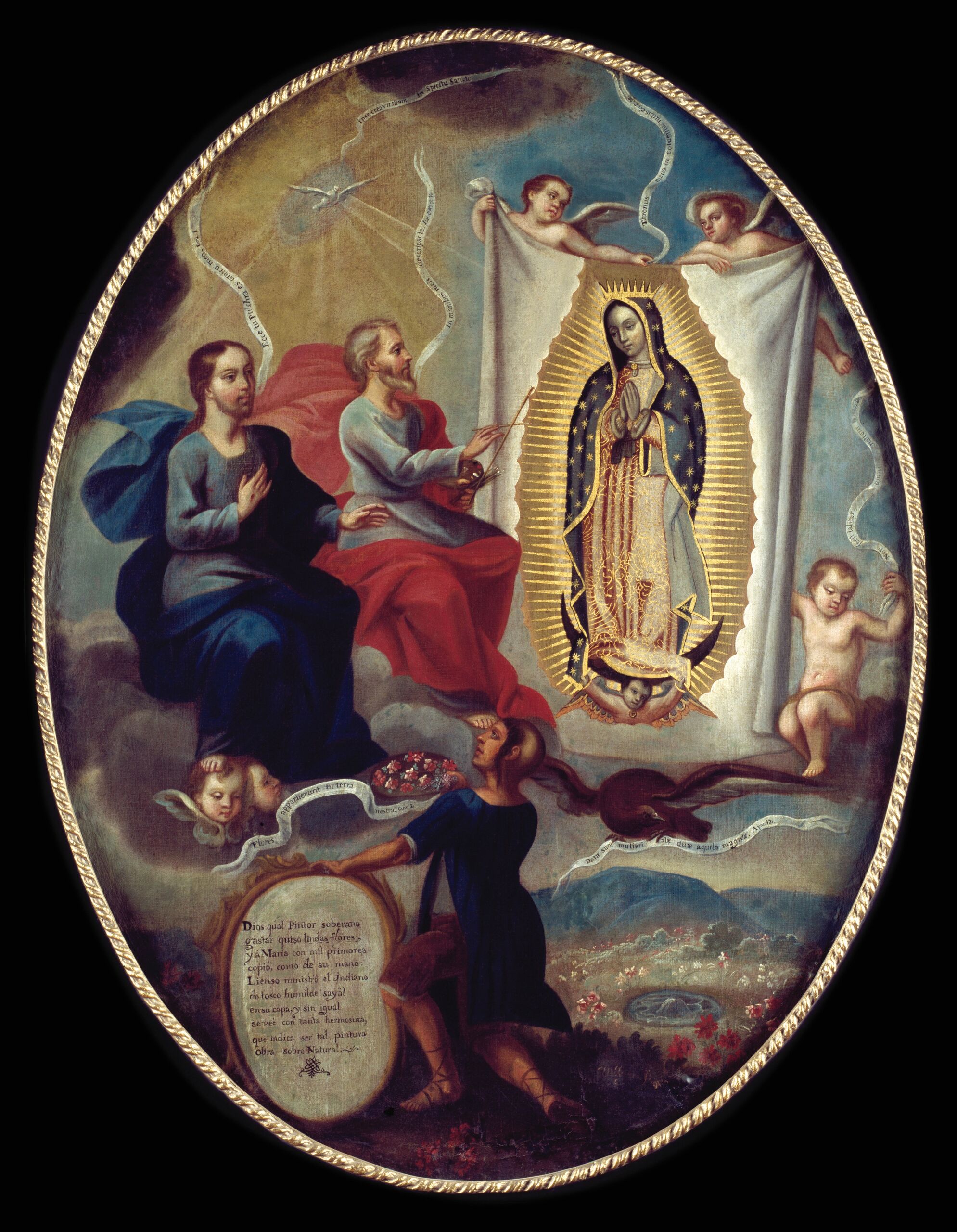 El Padre Eterno pintando a la Virgen de Guadalupe, atribuido a Joaquín Villegas (act. h. 1713-53). Óleo sobre lienzo h. 1740-50. Ciudad de México, INBAL/Museo Nacional de Arte, Donación FONCA, 1991