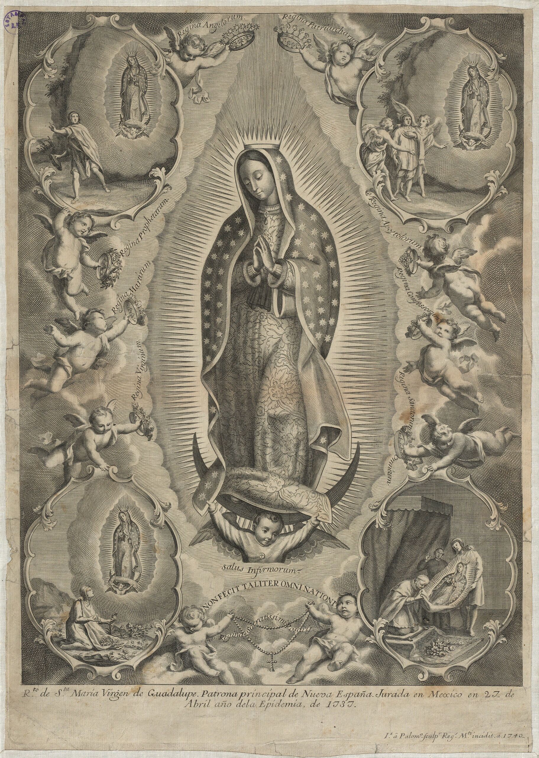 Retrato de Santa María Virgen de Guadalupe, de Juan Bernabé Palomino (1692-1777). Aguafuerte y buril, 1740. Madrid, Biblioteca Nacional de España