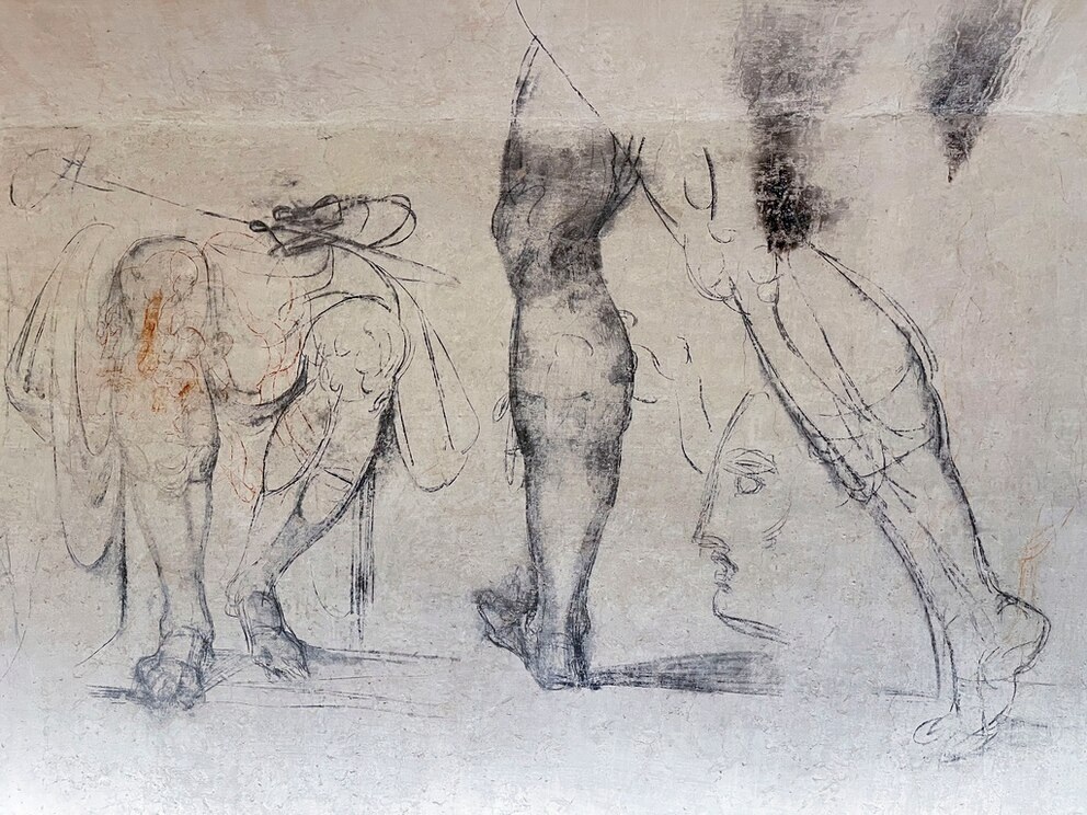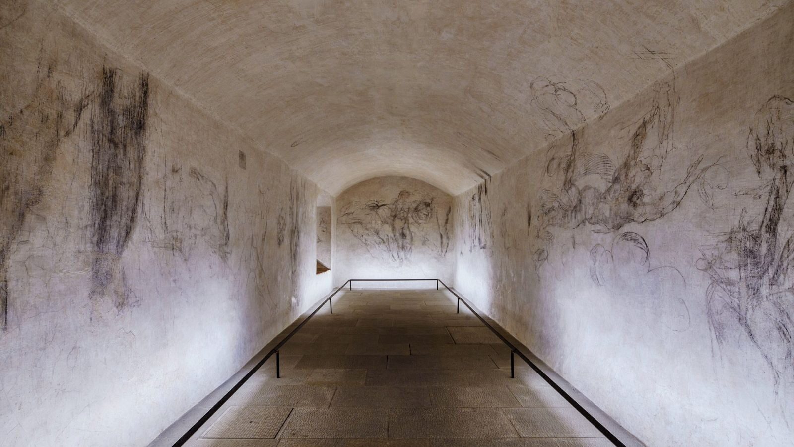 Lo más interesante de este sótano son los bocetos que, supuestamente, el artista pintó en sus paredes para hacer más soportable su encierro. Son varias figuras, trazadas con palos de madera carbonizados y sanguina, un pigmento de óxido de hierro. Se identifica, por ejemplo, el rostro de Laocoonte que posteriormente esculpiría. Otro esbozo recuerda a su famoso David. Estaban cubiertas de dos capas de yeso y, para algunos expertos, su autoría sigue siendo indeterminada.