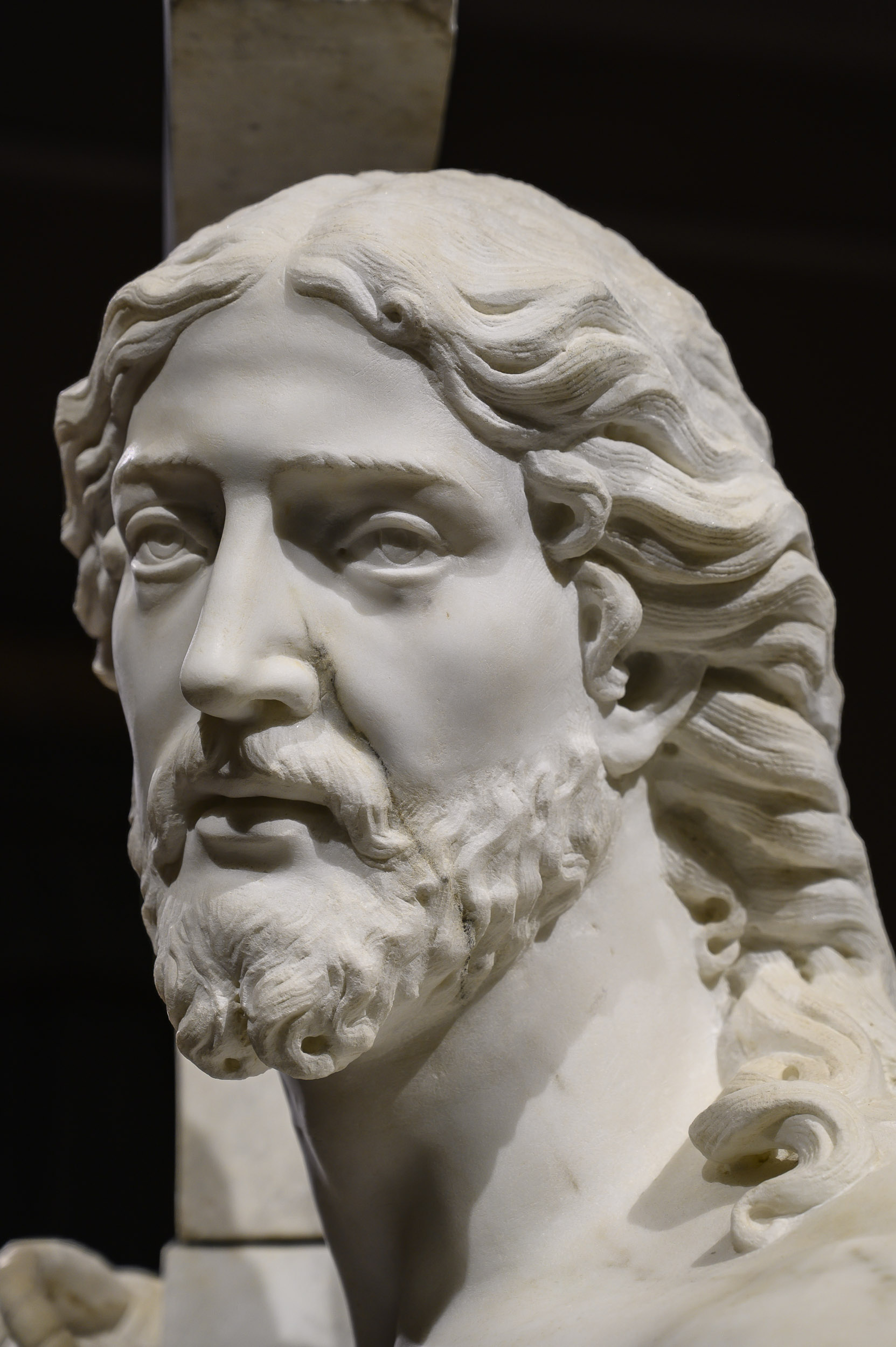 Se trataba de una veta oscura que ocultaba el blanquísimo bloque de mármol de Carrara y que apareció justo en el rostro de Jesucristo. El genio consideró que con ese defecto no cumplía su estándar de exigencia y la abandonó.
