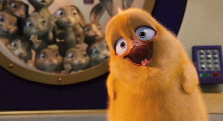 El guión de Cinco Paul y Ken Dario, autores de textos para la serie de animación Bob Esponja, se permite guiños a un sector adulto, y el diseño de los personajes y su expresividad son capaces agradar tanto a niños como a padres. Paul y Dario convierten a unos adorables pollitos hispanos en los villanos de la función, y se reservan algunos guiños a E.T. (tanto Hop como Fred, su compañero humano, son dos ni-nis que comparten edad y aficiones) y un par de gags memorables en los que el conejo ejerce de muñeco.