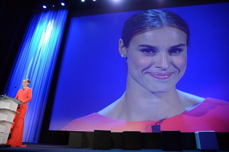 La actriz y modelo polaca, Kasia Smutniak, habla durante la ceremonia de inauguración de la 69 edición del Festival Internacional de Cine de Venecia, Italia.