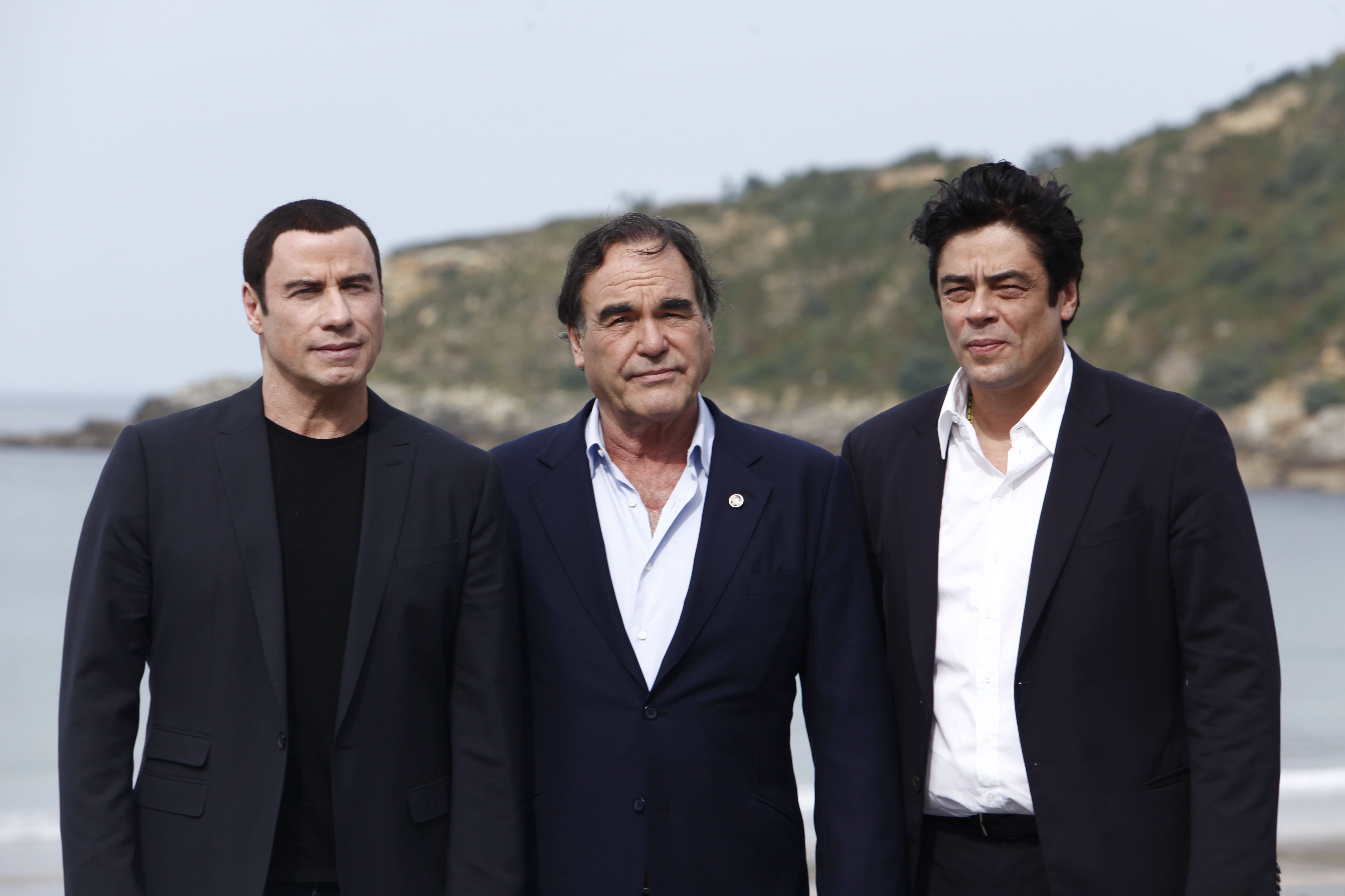 John Travolta, Premio Doností, con el director Oliver Stone y el actor Benicio del Toro. Presentaron Salvajes.