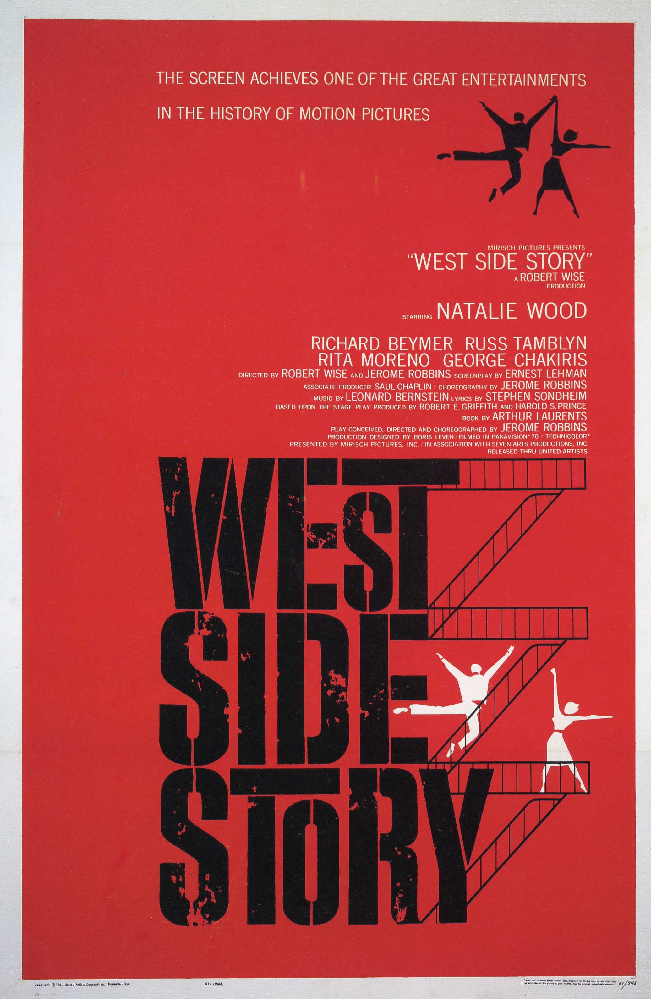 El diseño del título del filme convertido en un bloque, al modo de la identidad corporativa de una empresa, fue imitado en Broadway y Hollywood. El título sirve, además, como imagen del West Side neoyorquino, con sus escaleras de incendios y los amantes danzando en el espacio.