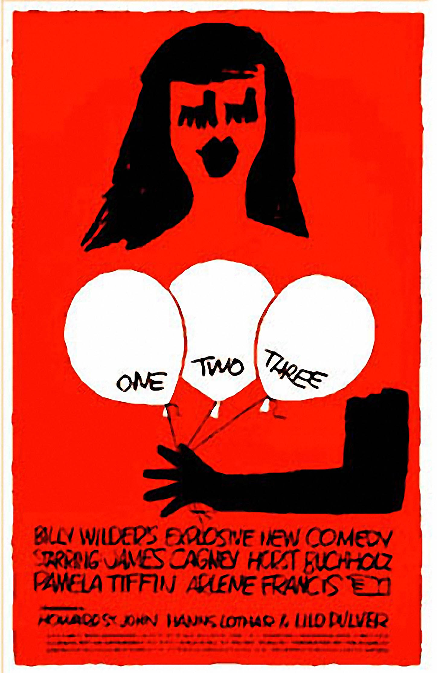 Billy Wilder llamó a Saul Bass para diseñar los créditos pop de "La tentación vive arriba" (1955) y de su comedia más feroz: Un, dos, tres (1961). Éste es uno de los carteles alternativos al oficial, en sintonía con la línea punzante y sarcástica del engaño de los "globos" de Lilo Pulver.