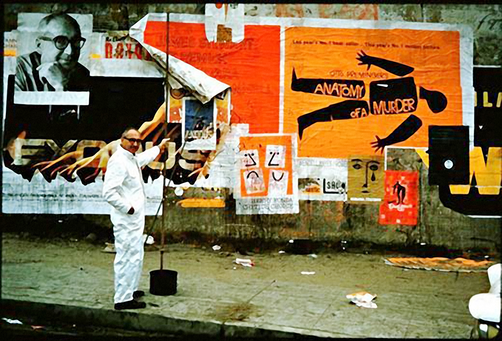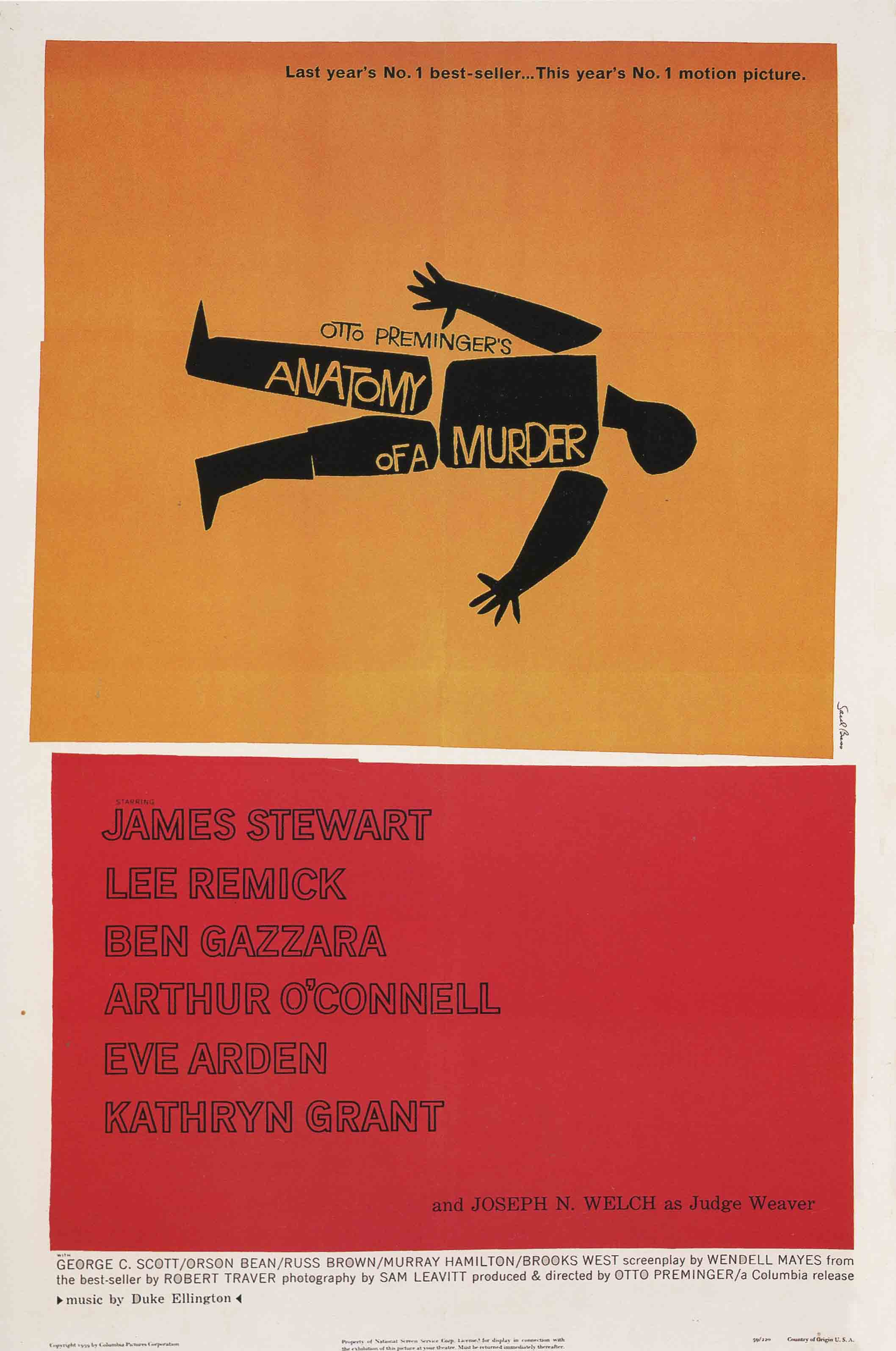 Este cartel, que Saul Bass diseñó a partir de los créditos de Anatomía de un asesinato (1955), es, junto al mítico "brazo de oro", uno de los iconos de cartelismo moderno más imitado por los diseñadores contemporáneos. El cuerpo fragmentado y el despojamiento del cartel quintaesencian magistralmente la idea del filme.