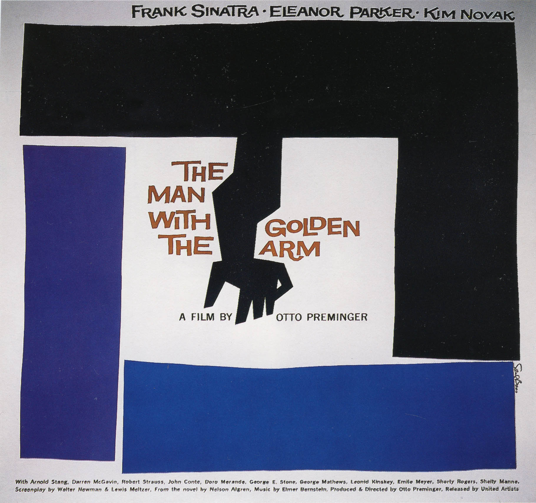 Los créditos y el diseño gráfico de El hombre del brazo de oro (1955), de Otto Preminger, trastocó la idea de los créditos y la conceptualización de la idea esencial del filme, simbolizada en la representación del brazo crispado del yonki. La influencia de la Bauhaus y de Picasso son notorias.