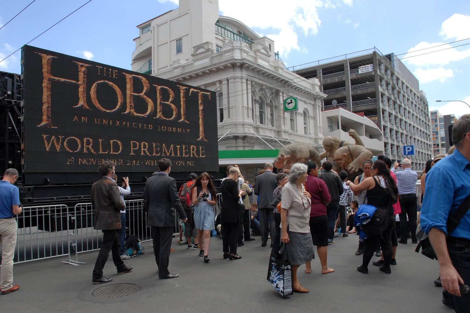 Jackson (centro) confesó que el entusiasmo de los fans le vuelve loco. Wellington es su ciudad natal, y allí llevó a cabo tanto la producción de El Hobbit como la de El Señor de los Anillos, convirtiendo la ciudad en una nueva meca del cine. "Soy un orgulloso kiwi", dijo