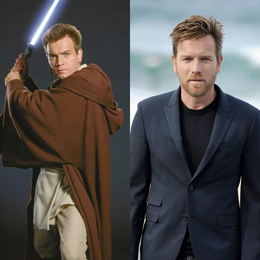 Ewan McGregor, descubierto en Trainspotting, tomó el relevo del fallecido Alec Guiness a la hora de encarnar a Obi Wan Kenobi, uno de los personajes trascendentales de la serie. McGregor, de 41 años, sigue siendo una estrella internacional, y es también el protagonista de la película más exitosa del cine español, Lo imposible.