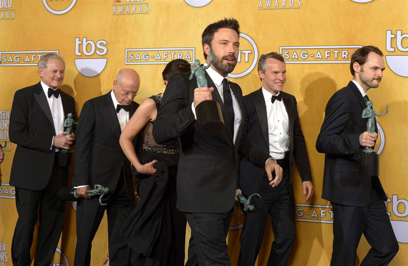 Affleck y el reparto de Argo sostienen su premio por la película dirigida por el actor, que también se llevó el premio a la mejor película en los del sindicato de productores, celebrada unas horas antes. La película escala puestos en la competición para los Oscar.