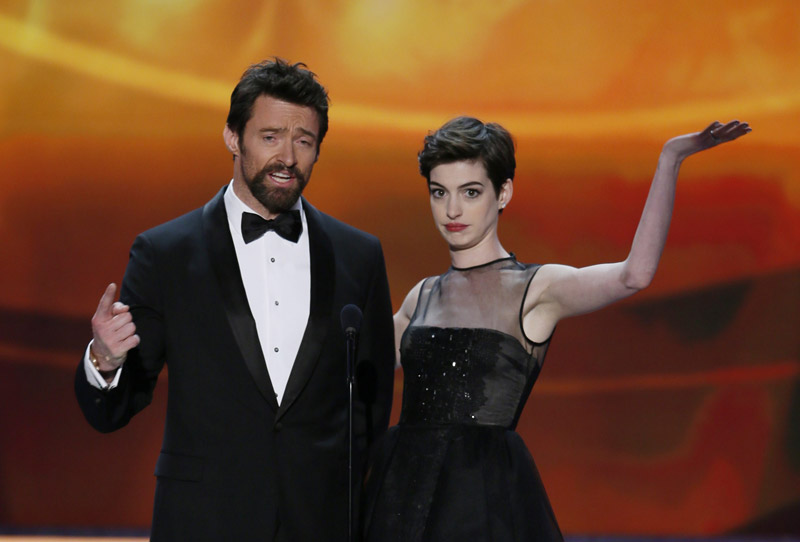 Hugh Jackman y Anne Hathaway desplegando química dentro de la pantalla con Los Miserables, pero también fuera en los SAG.
