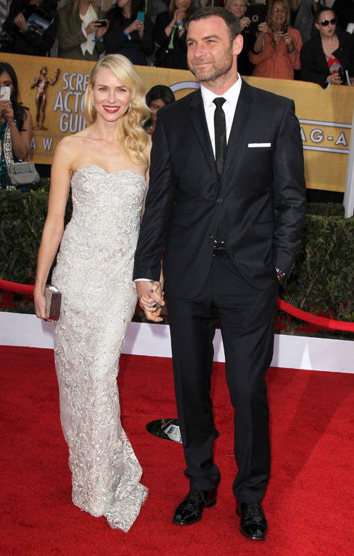 Naomi Watts estaba nominada por su labor en la española Lo imposible. Perdió ante Jennifer Lawrence por El lado bueno de las cosas. En la foto, con su marido Liev Schreiber.