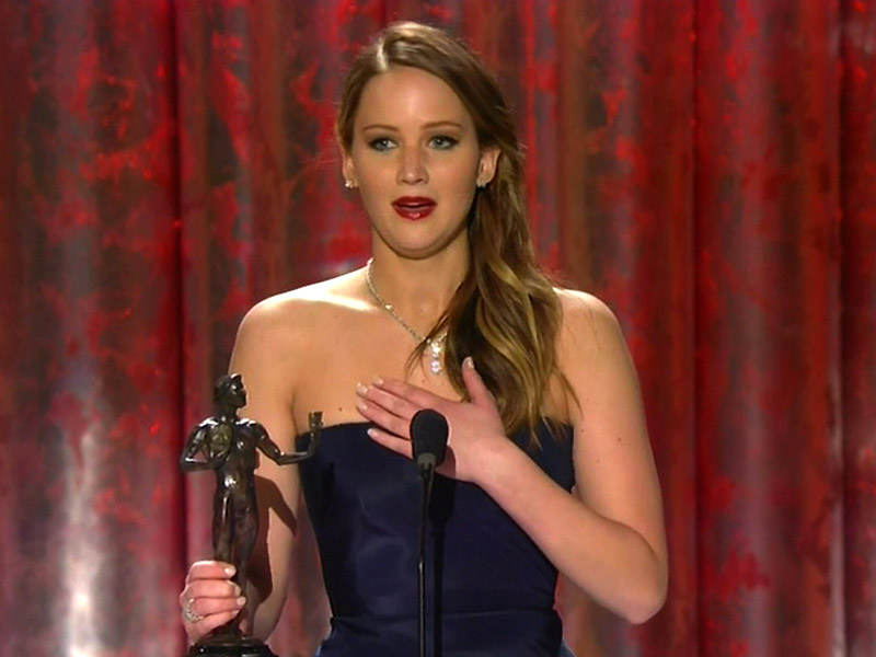 Jennifer Lawrence ganó el premio a la mejor actriz del sindicato de actores, posicionándose con ventaja para el mismo premio en los Oscar. Además, la protagonista de El lado bueno de las cosas protagonizó la anécdota de la jornada al romperse su vestido según subía a recoger el premio.