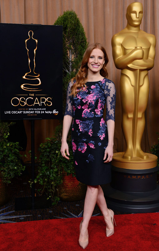 La pelirroja suele lucir de lo más elegante en las entregas de premios. En la imagen, en el almuerzo para nominados a los Oscar que tuvo lugar esta misma semana. A estas alturas, la competición por el premio a la mejor actriz queda entre Chastain y Jennifer Lawrence.