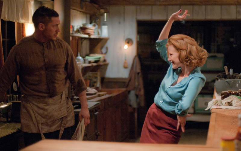 En Sin Ley Chastain comparte cartel con Shia Labeouf, Tom Hardy (en la imagen: Hardy fue el villano de El caballero oscuro: la leyenda renace) y Mia Waskikowska.