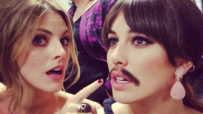 Amaia Salamanca admirando el bigote de Blanca Suárez para uno de los pocos gags de la gala.