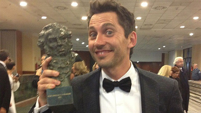 Quim Gutiérrez, actor habitual de Daniel Sánchez Arévalo, con el director en el baño.
