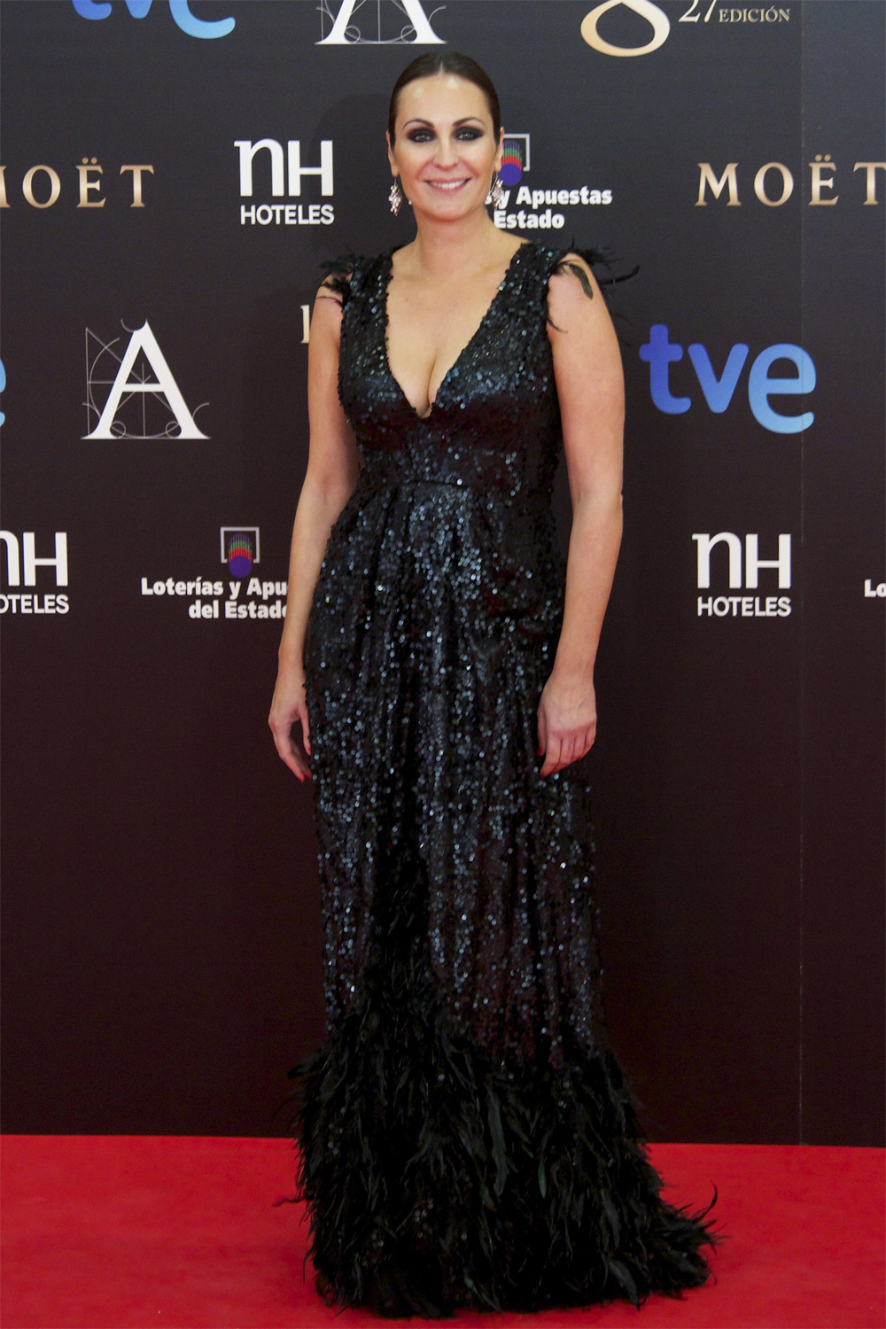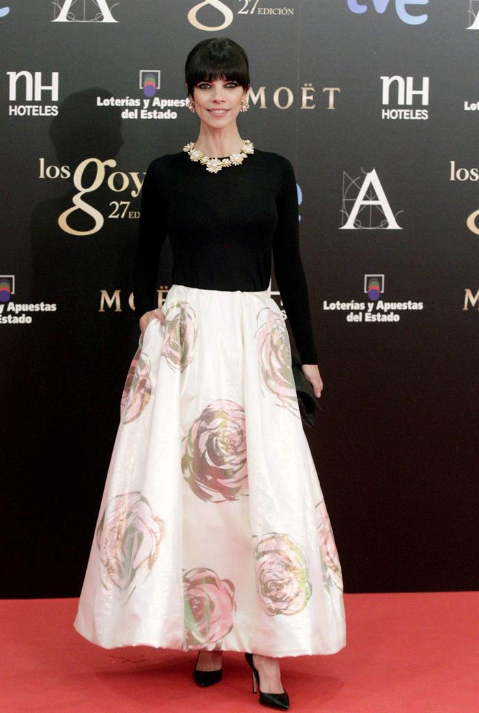 Aitana Sánchez-Gijón vistió un modelo en negro de Lorenzo Caprile. Las joyas son de Carrera y Carrera. La actriz, más delgada que nunca, puede presumir sin embargo de ser de las más elegantes de la ceremonia.
