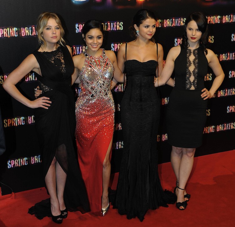 La película del cineasta indie Harmony Korine destaca por ser la primera oportunidad de Vanessa Hudgens y Selena Gomez, ambas exchicas Disney, para alejarse de su imagen de cándidas figuras infantiles.