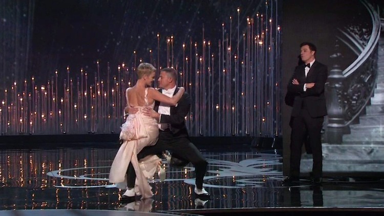 Uno de los mejores momentos de la gala envolvió a Channing Tatum (exstripper metido a actor) y Charlize Theron bailando al son de Seth McFarlane.