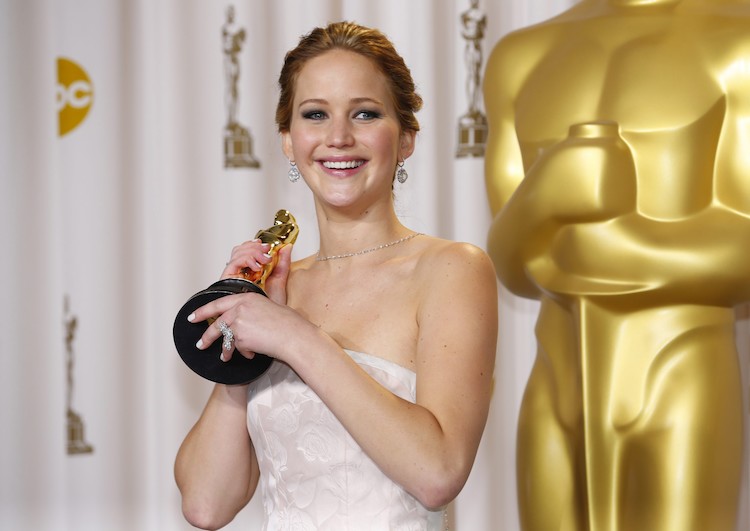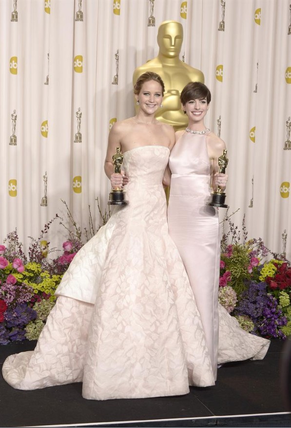 Jennifer Lawrence, ganadora por El lado bueno de las cosas, junto a Anne Hathaway por Los miserables.