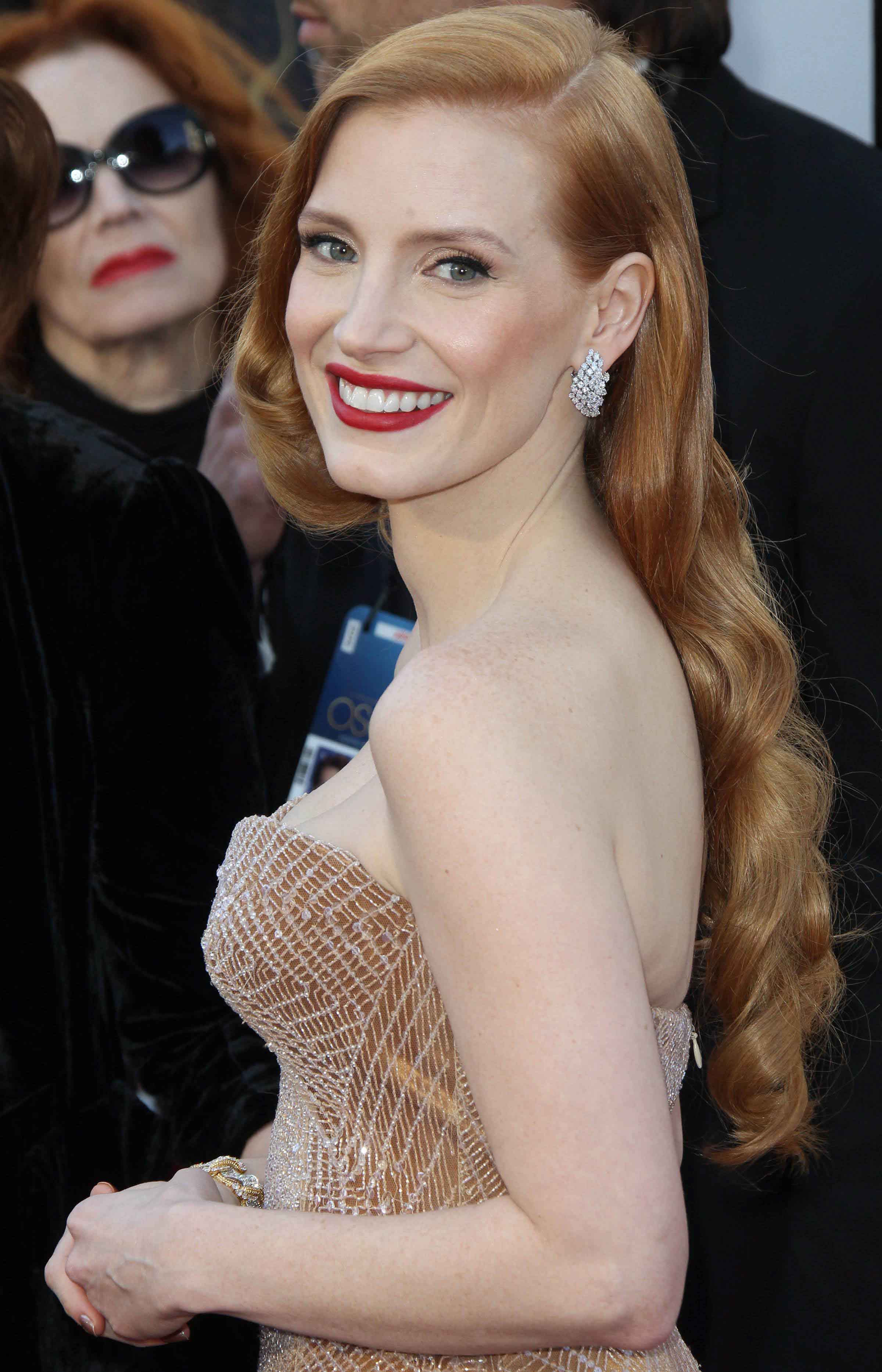 Jessica Chastain no pudo llevarse su Oscar, pero arrasó con un nude y un peinado a lo Hollywood clásico.