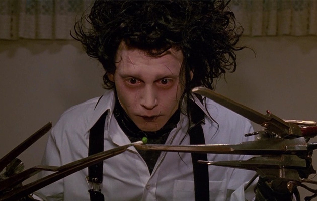 El maquillaje extremo de Johnny Depp para la mítica y entrañable Eduardo Manostijeras le asemeja a un dibujo animado extraído directamente de la mente de su director, Tim Burton.