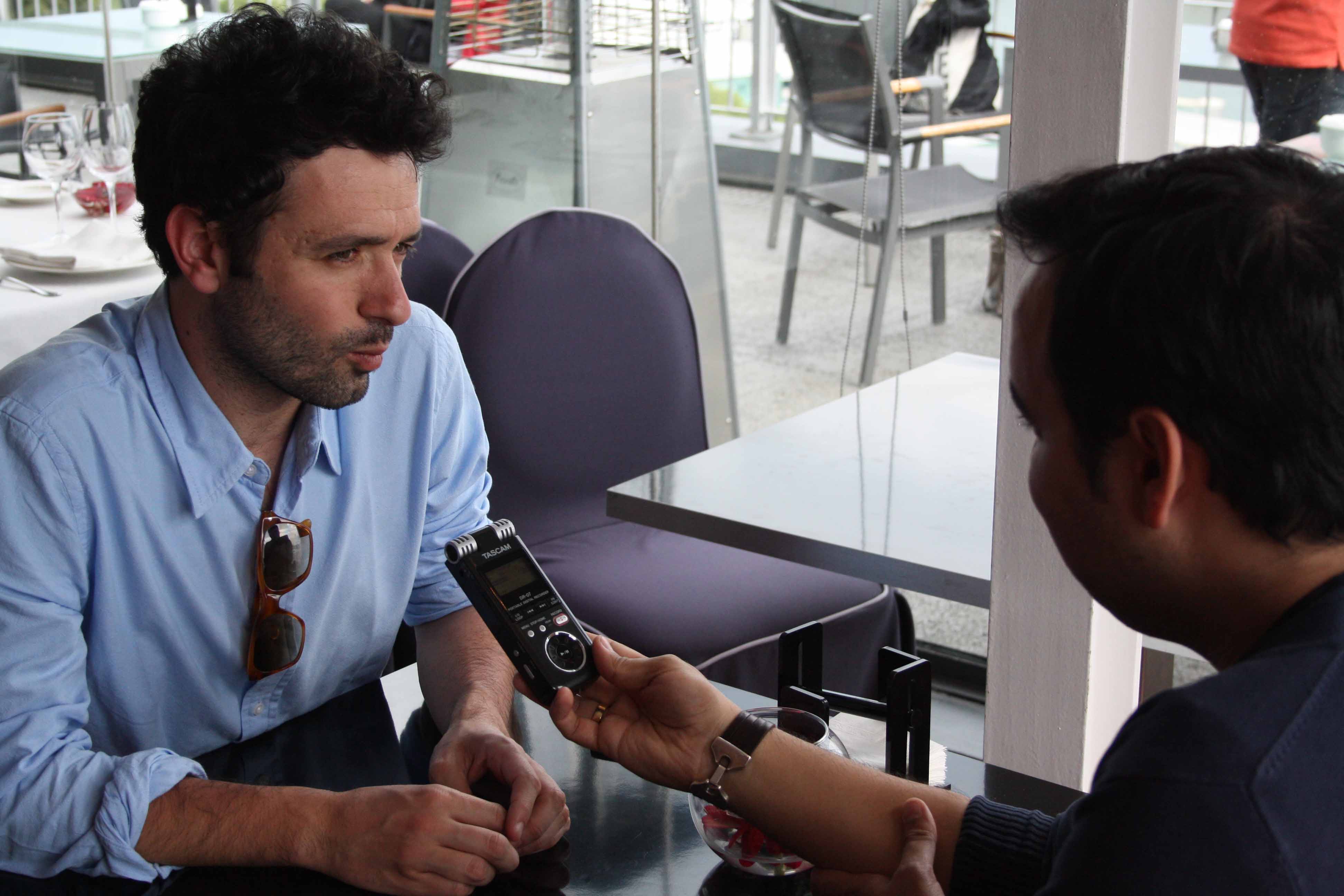 Sergio Pérez entrevistando a Rodrigo Sorogoyen.