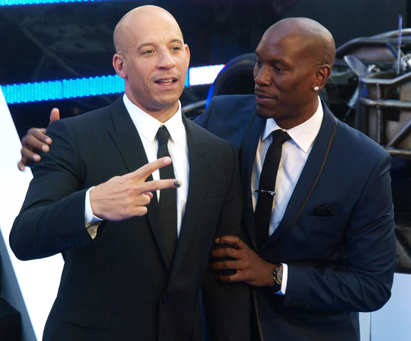 Vin Diesel estará por partida doble en la cartelera de verano. En septiembre estrenará otra secuela, Riddick, tercera parte de la saga de ciencia ficción iniciada con Pitch Black. En la imagen, de esmóquin junto a Tyrese Gibson.