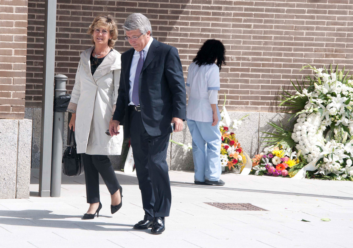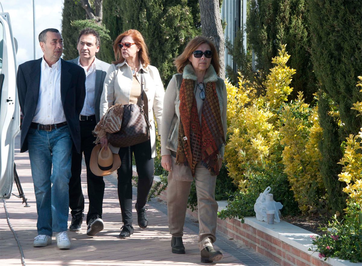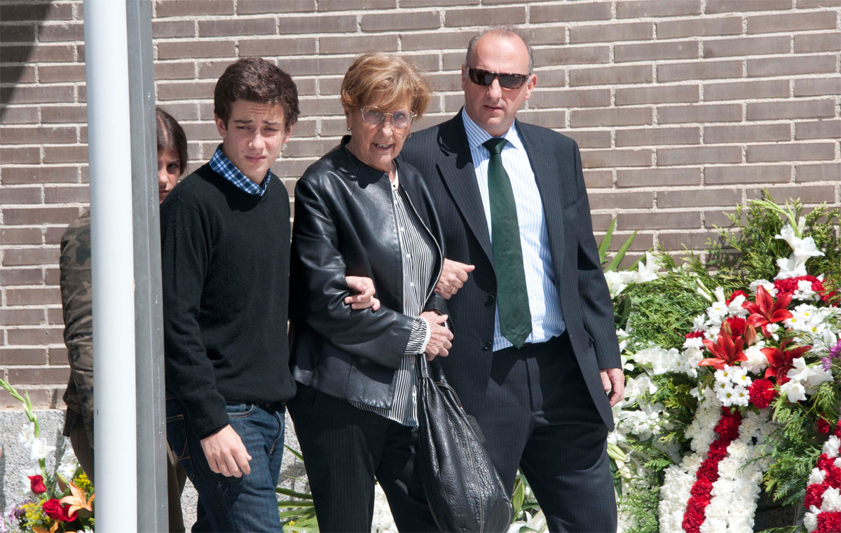 Su viuda Maite Imaz Armendi, junto a los familiares más íntimos del actor, a la salida del tanatorio de Colmenar