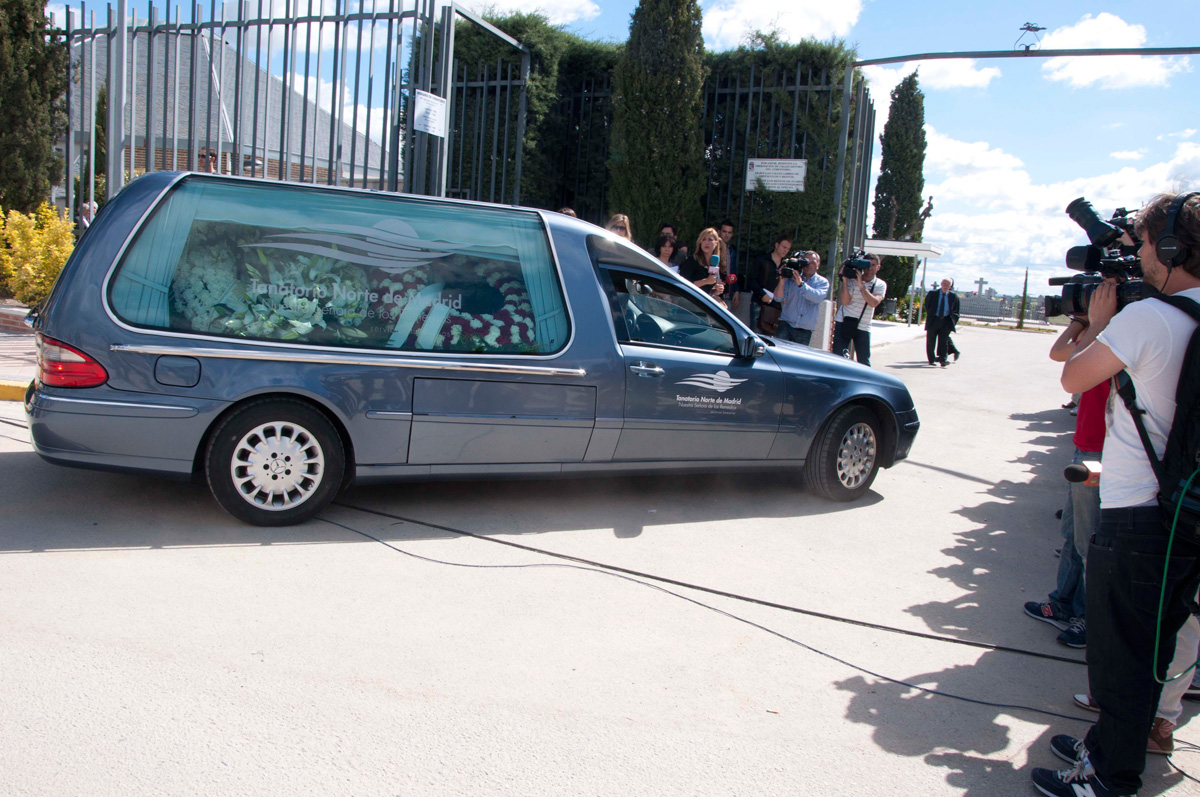 La llegada del coche fúnebre con los restos mortales del actor español. Decenas de medios de comunicación han sido testigos del funeral del actor Alfredo Landa