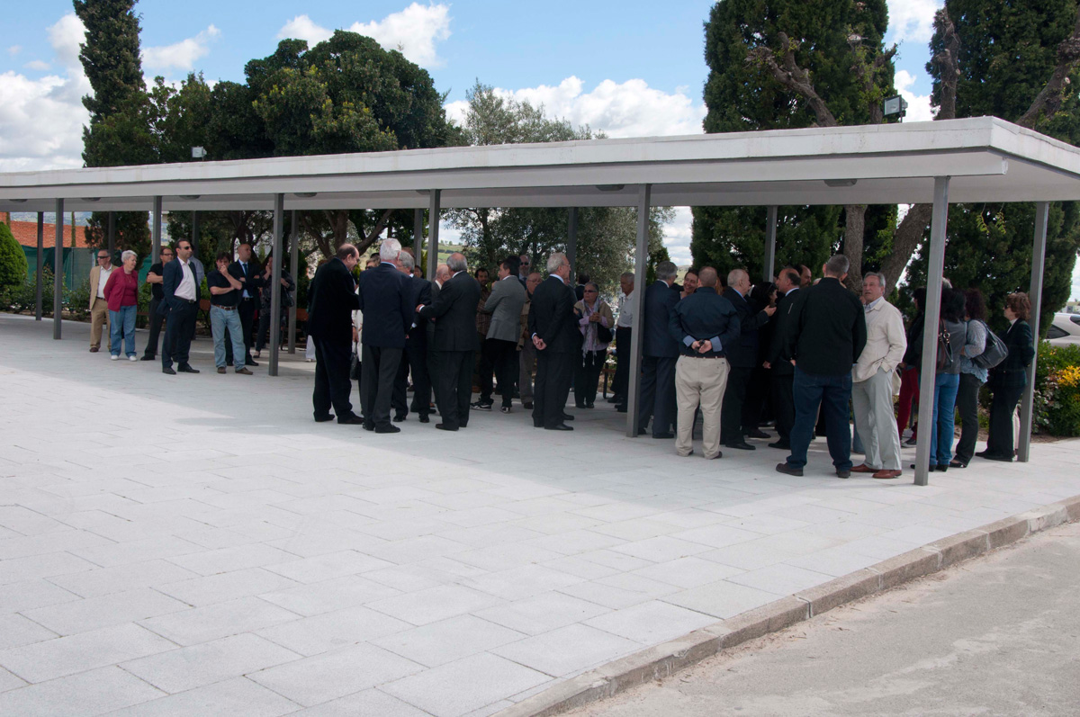 El porche del cementerio fue un punto de encuentro improvisado para los amigos y seguidores del actor
