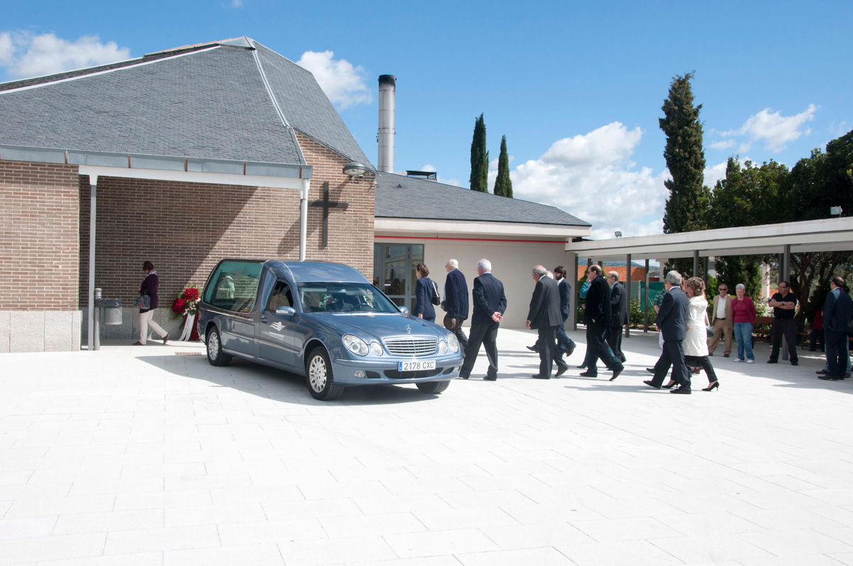 Los familiares y amigos más cercanos comenzaban a entrar en el tanatorio momentos antes de proceder al responso e incineración de los restos mortales de Alfredo Landa