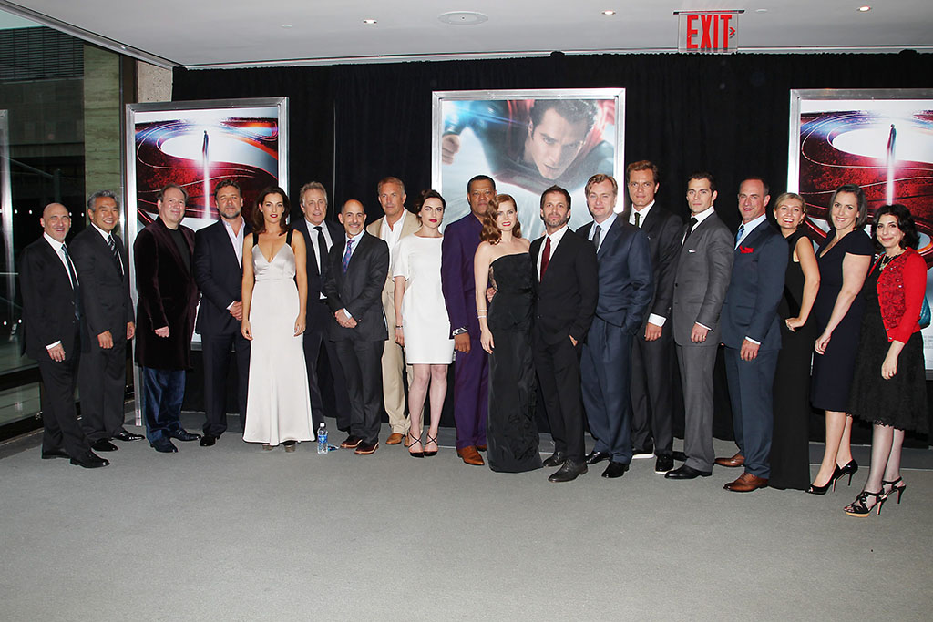El equipo al completo de la película, incluyendo al productor Christopher Nolan y el director Zack Snyder, ambos en el centro de la imagen. El Hombre de Acero es la nueva versión cinematográfica de Superman y, sin duda, la película más esperada de la temporada. La Premiere tuvo lugar en el Lincoln Center de Nueva York.