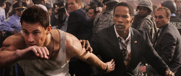 Y no se crean, que todo esto lo digo con increíble pesar: la película protagonizada por un carismático Channing Tatum y un Jamie Foxx un tanto ausente, haciendo este último de un sosías de Obama, recupera para el cine de gran presupuesto los postulados de dos pilares del género como los arriba citados y se presenta, pese a su fracaso económico (costó doscientos, recaudó cien), como la secuela que ninguna de esas dos películas, sobre todo la segunda, jamás tuvieron. Y más aún teniendo en cuenta las nefastas sensaciones que dejó hace poco la lamentable La Jungla: un buen día para morir, otro fracaso de taquilla que demuestra que, ahora mismo, el público parece haber dado la espalda a esa concepción del blockbuster masculino en favor de otro modelo de espectáculo, y cuya comparación con la presente da las claves de lo que van a leer a continuación.