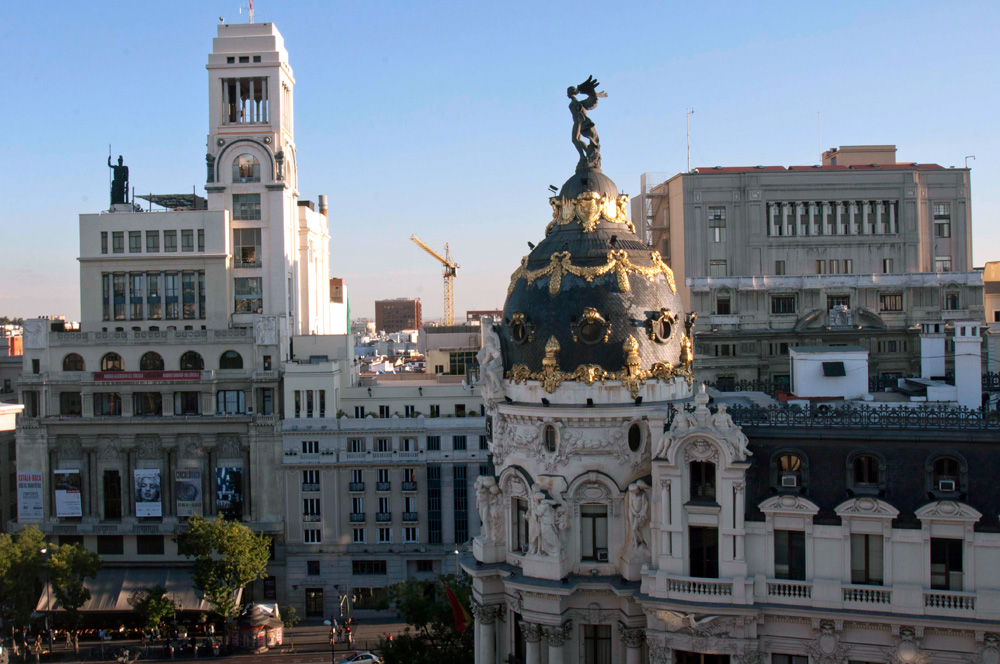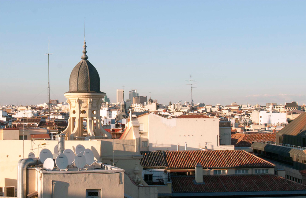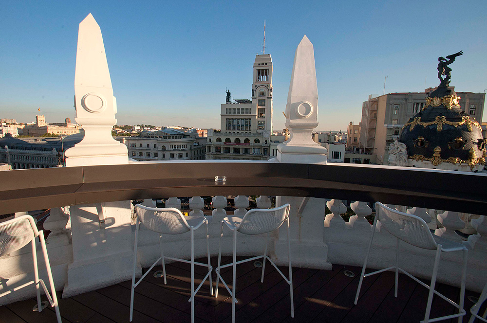 Desde una de sus terrazas se pueden admirar algunos de los edificios más emblemáticos de Madrid como el Círculo de Bellas Artes.