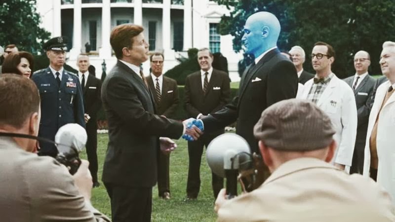 El actor Brett Stimely se ha especializado en hacer de doble de JFK en multitud de filmes donde hace solamente una aparición fugaz. Watchmen (en la imagen con el Dr. Manhattan), Transformers 3, El teniente Amado, la propia Parkland, también incluída en la lista... De momento, van cuatro, lo que sin duda bate alguna clase de récord.