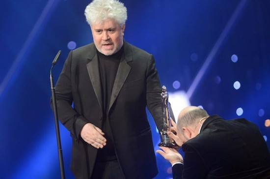 El director español Pedro Almodóvar recibió este sábado en Berlín el premio de honor de la Academia del Cine Europeo, de manos de la actriz sueca Noomi Rapace, con un breve discurso en que se refirió a la mala situación que atraviesa España, en manos de un gobierno que calificó de "insensible".