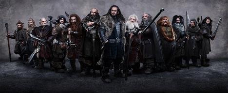 Los enanos son una raza muy orgullosa. Los trece que acompañan a Bilbo y a Gandalf son guerreros y cada cual tiene su habilidad. Están liderados por su rey, Thorin Escudo de Roble y responden a los nombres de Balin, Dwalin, Bifur, Bofur, Bombur, Fili, Kili, Ori, Dori, Nori, Óin y Glóin.