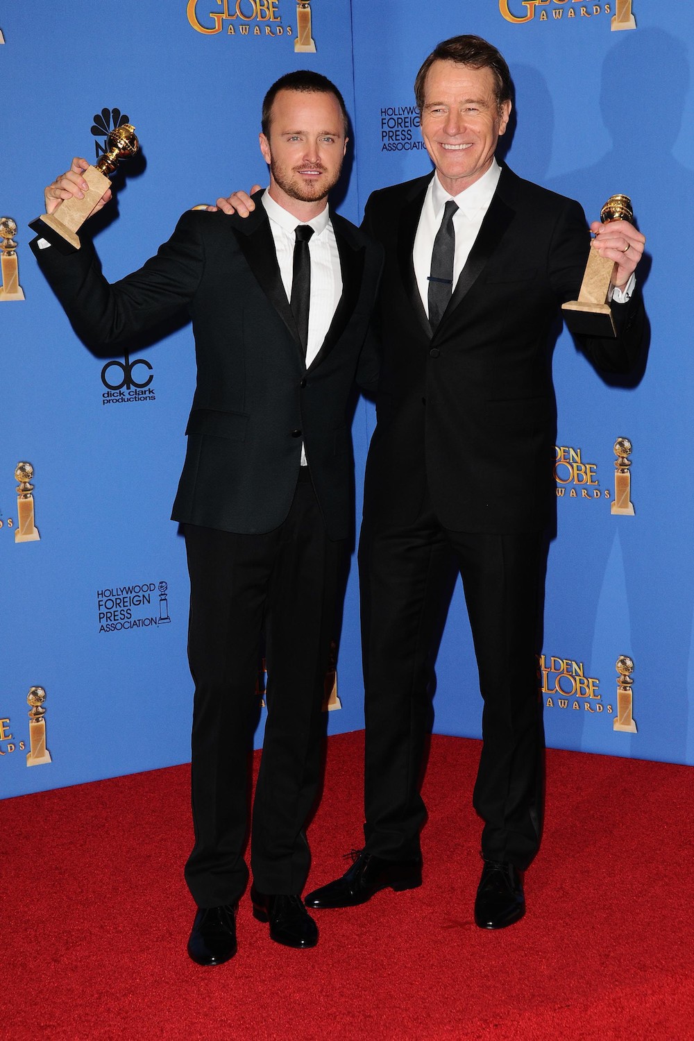 Bryan Cranston fue el mejor actor dramático en serie de televisión por su papel de Walter White en la finiquitada Breaking Bad, que también ganó al mejor drama televisado. A su lado, su compañero de reparto Aaron Paul. Se trataba de dos de los premios más esperados de la edición.