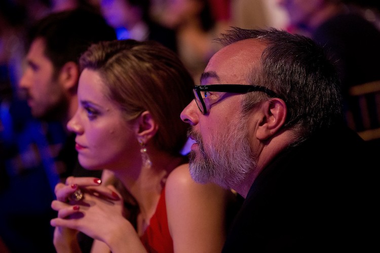 Álex de la Iglesia, nominado por Las brujas de Zugarramurdi, y su pareja la actriz Carolina Bang. El director subió al estrado a recoger el premio al mejor actor de reparto para Mario Casas, que no pudo acudir por estar rodando Los 33.