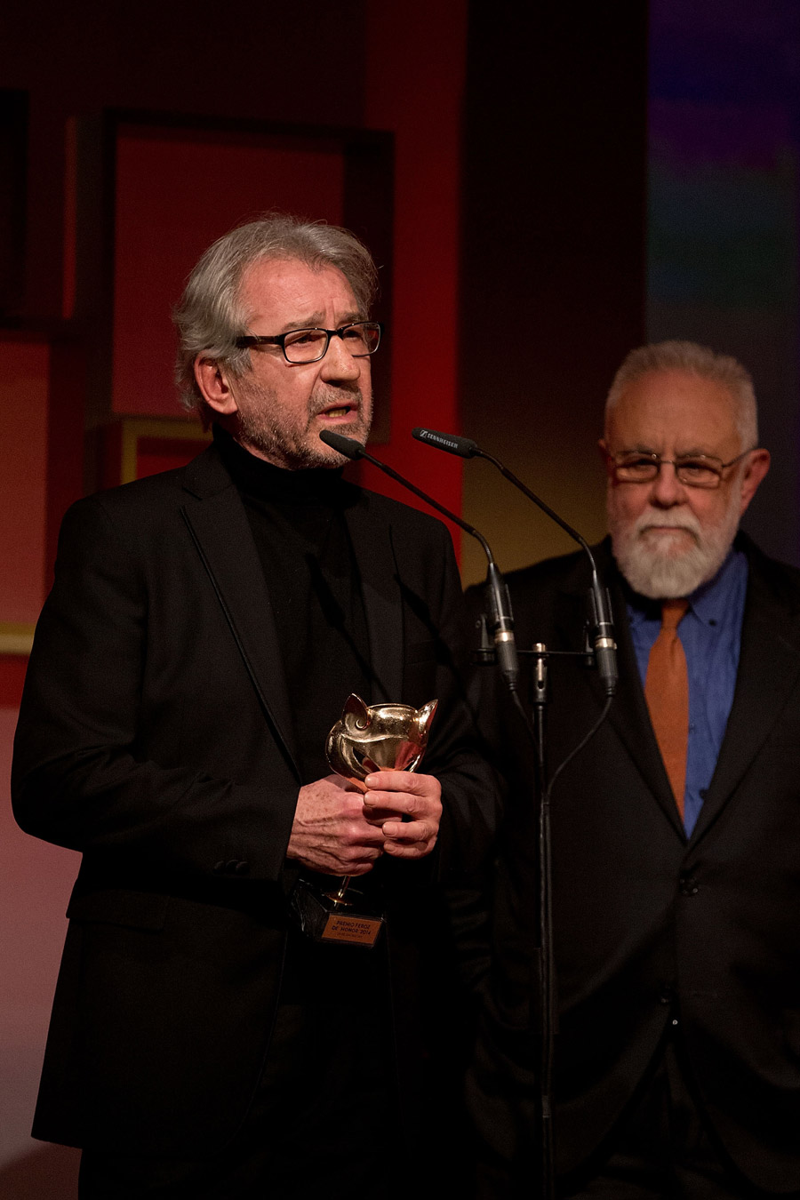 José Sacristan recibió el premio de honor de manos de Gonzalo Suárez, que le dedicó antes un sentido discurso.