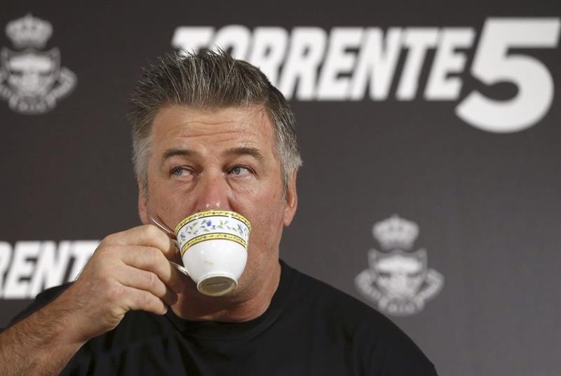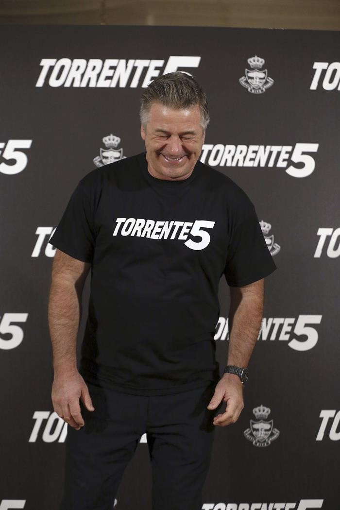 Baldwin, con rostro somnoliento y café con leche en mano, posó a las 8.15 de la mañana en el hotel Ritzz con un pantalón negro y la camiseta de la película. Santiago y el actor estuvieron solo cinco minutos y no contestaron a ninguna pregunta, para no desvelar nada del filme.