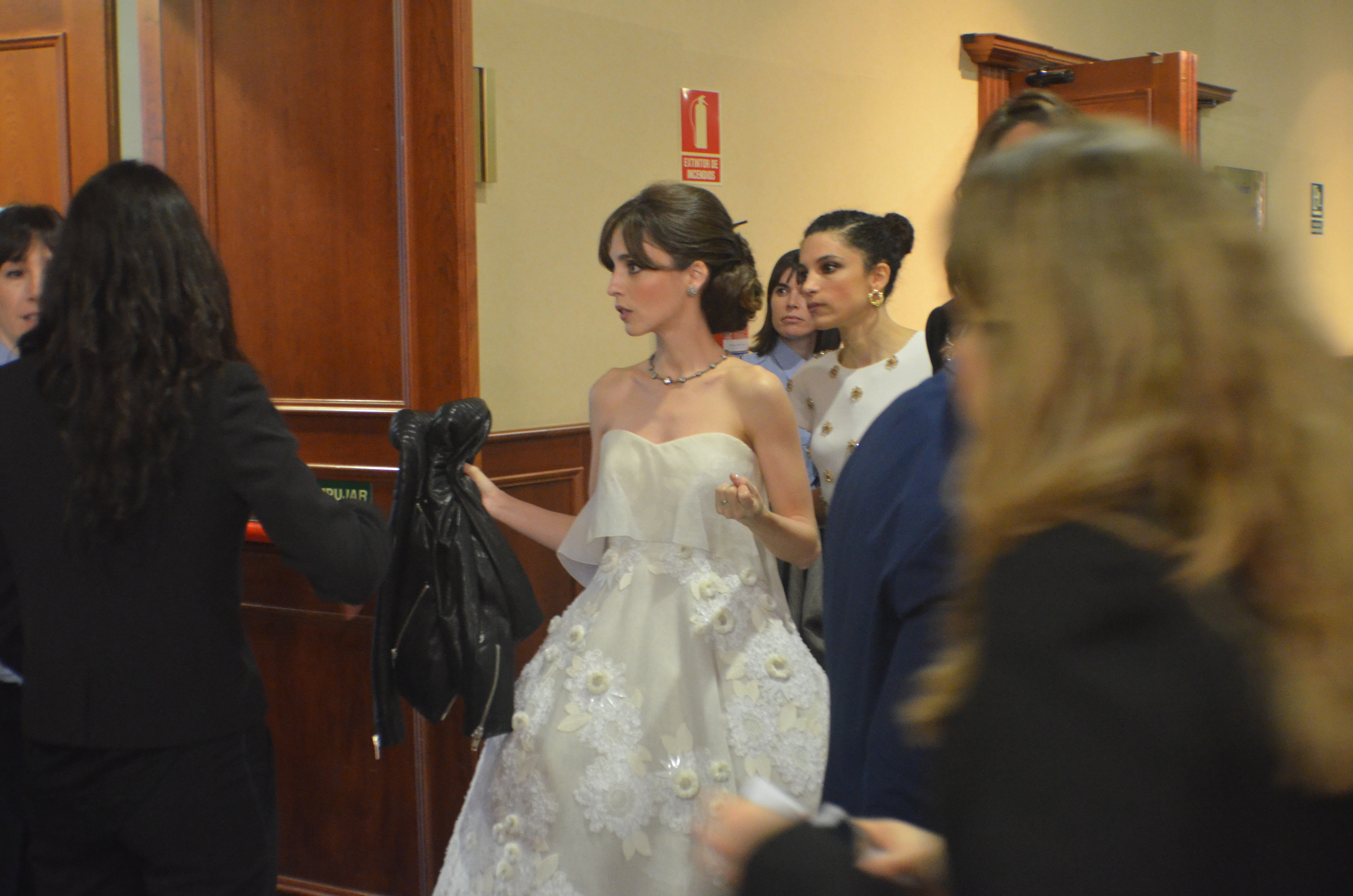 Leticia Dolera con una cazadora de cuero en el backstage, esperemos que no la llevara encima.