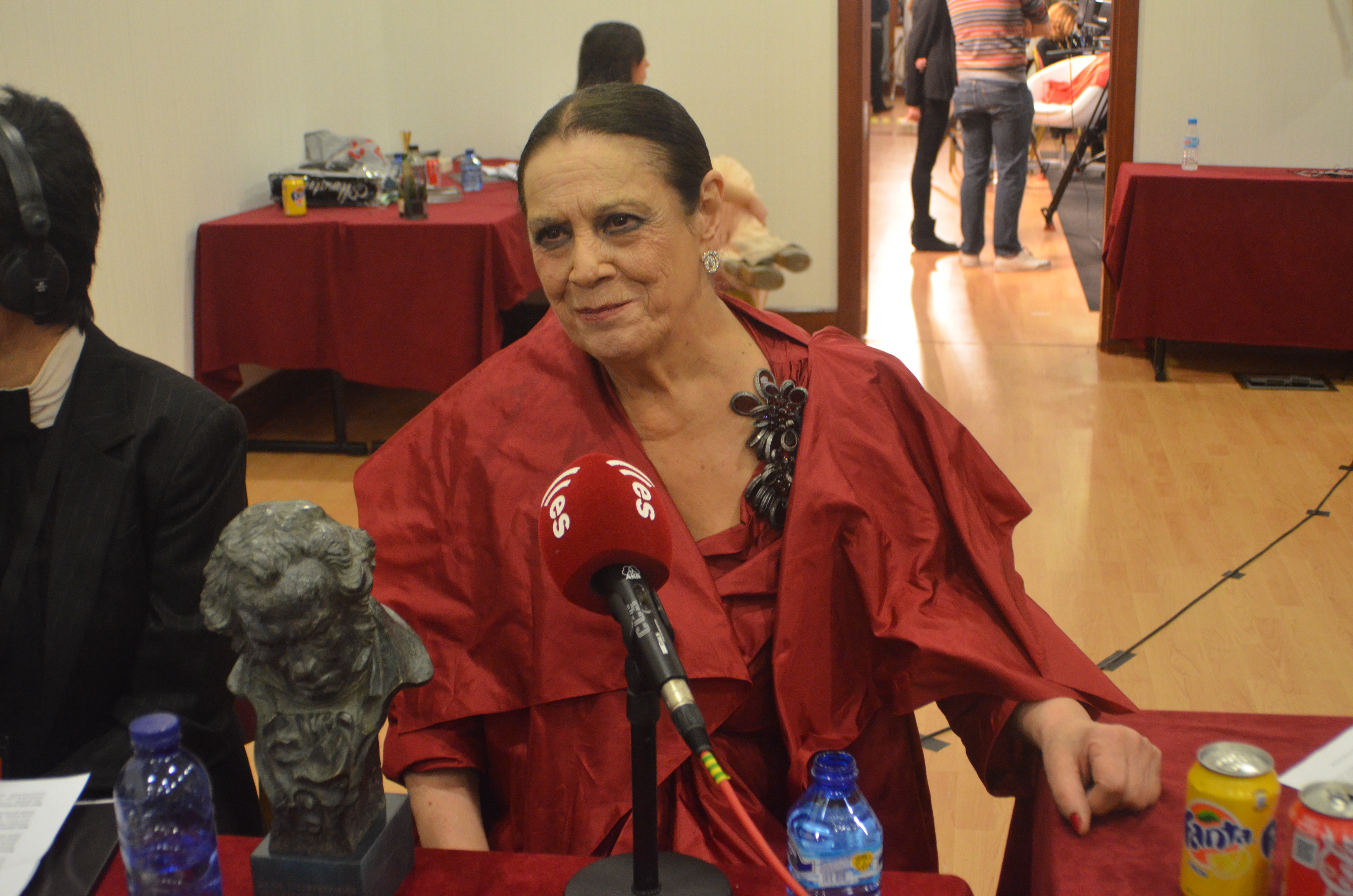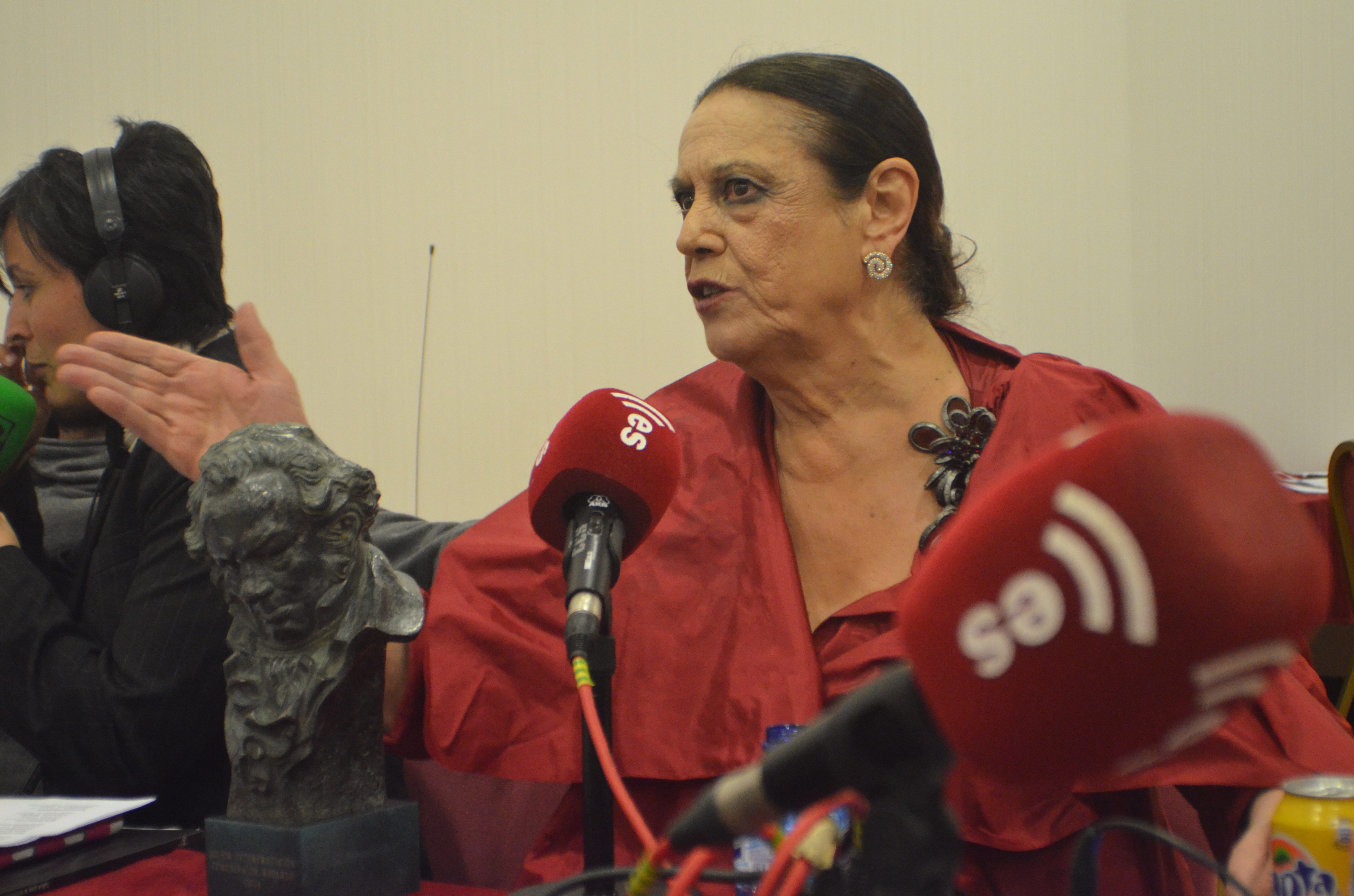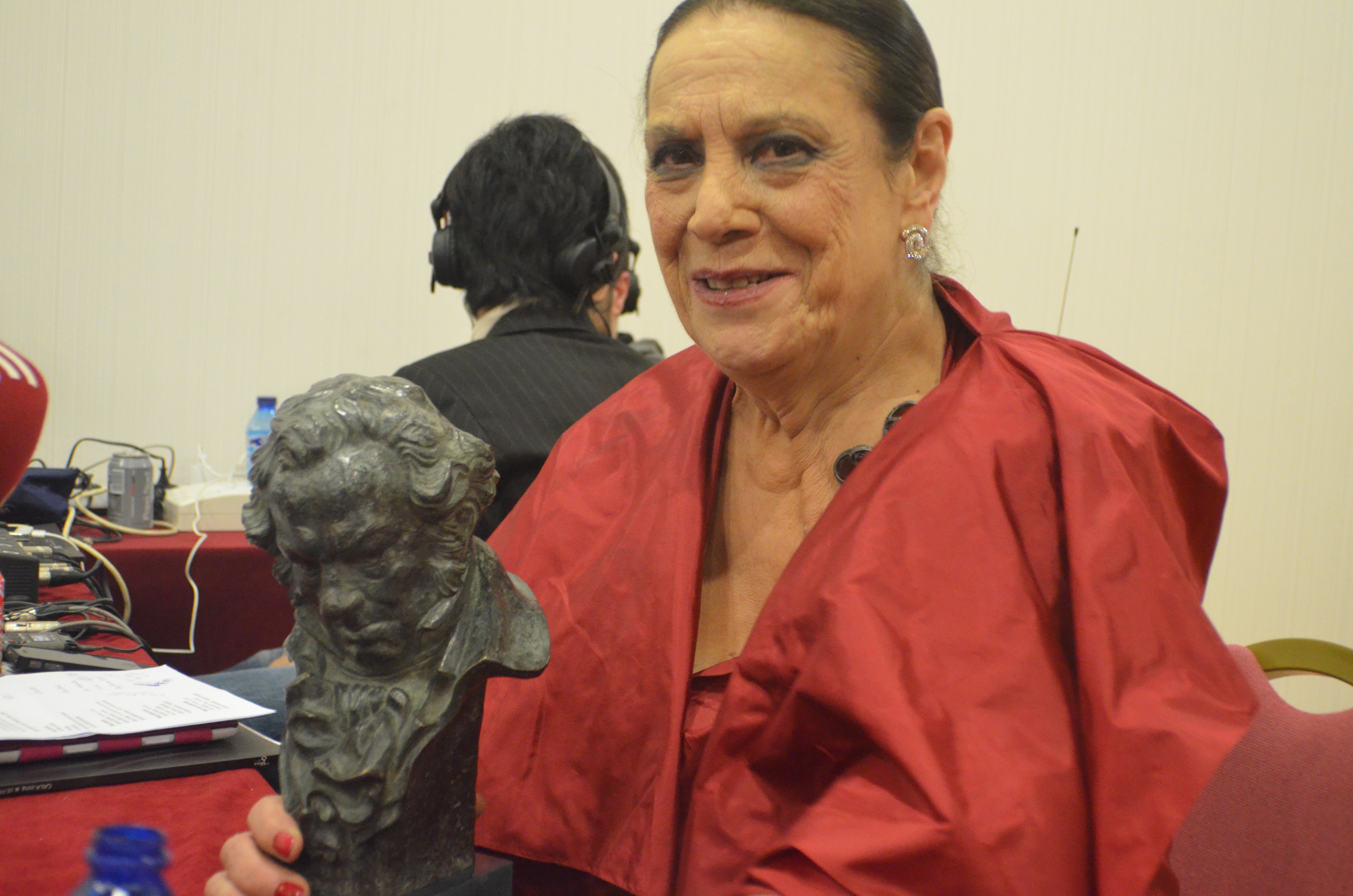 Terele Pávez no perdía de vista el Goya en ningún momento. Nos dijo literalmente mientras se sentaba, "el Goya no lo toca nadie hasta que lo coja mi hijo".