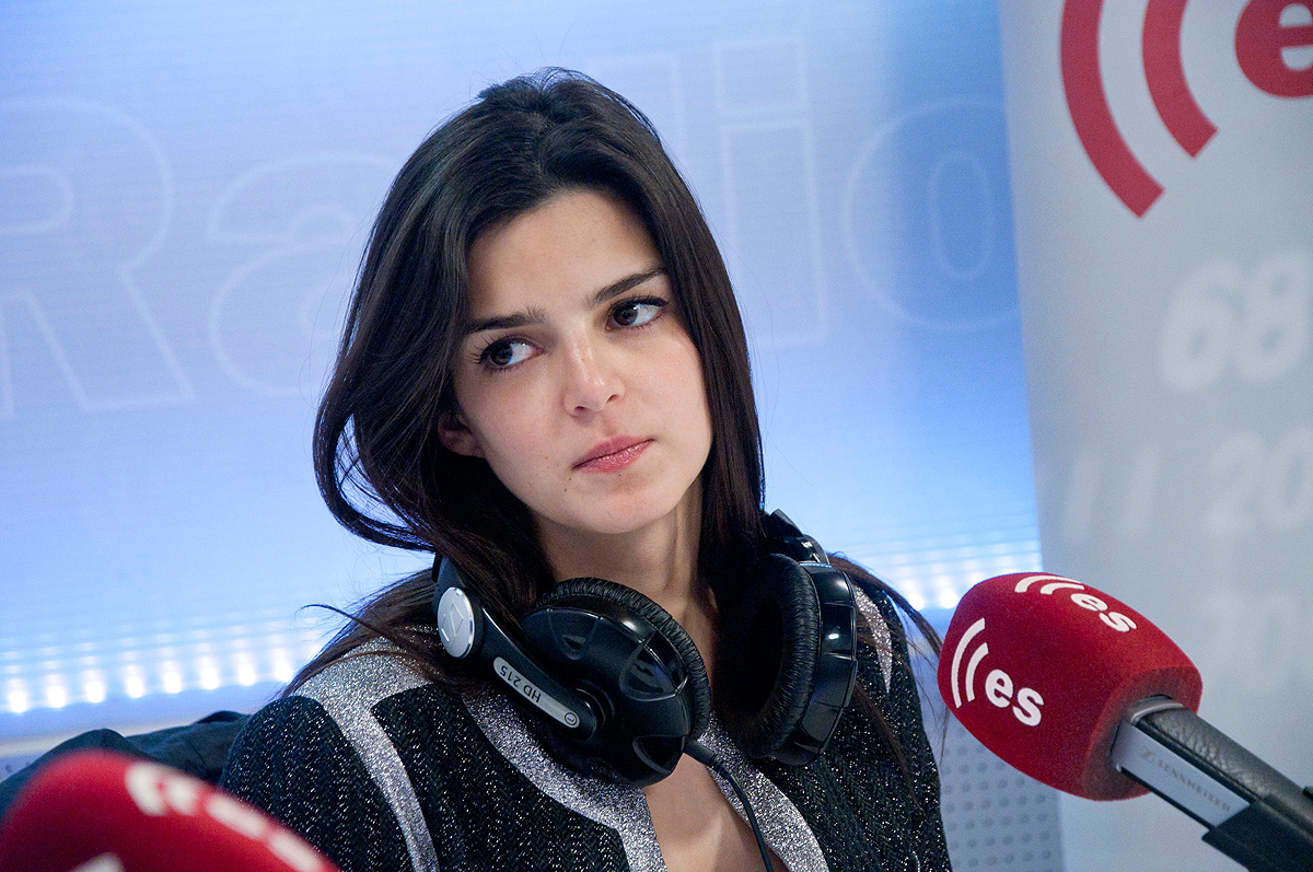 Momentos antes de comenzar la entrevista Clara Lago se coloca los cascos, que luego no utilizaría finalmente.