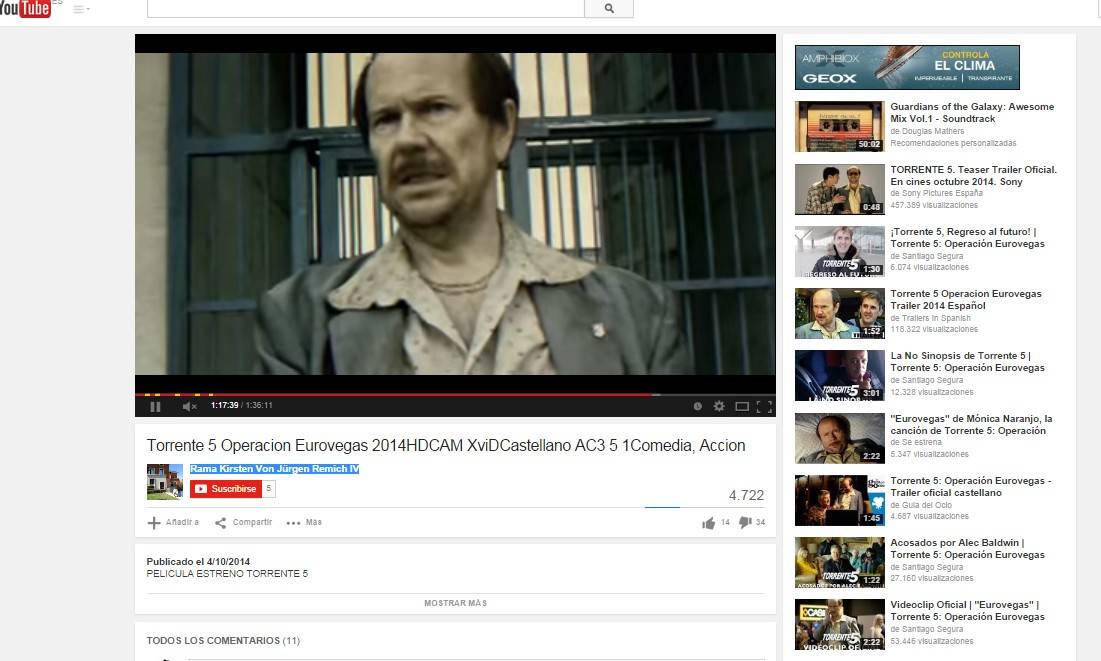 Una de las razones del dramático descenso de recaudaciones en las salas españolas es, sin duda, la piratería. La película dirigida y protagonizada por Santiago Segura no se libra pese a su éxito popular, y de hecho la mañana del lunes ya está disponible en la plataforma online Youtube, que no permite la publicación de tales contenidos ilegales y los retira cuando se percata de su existencia.