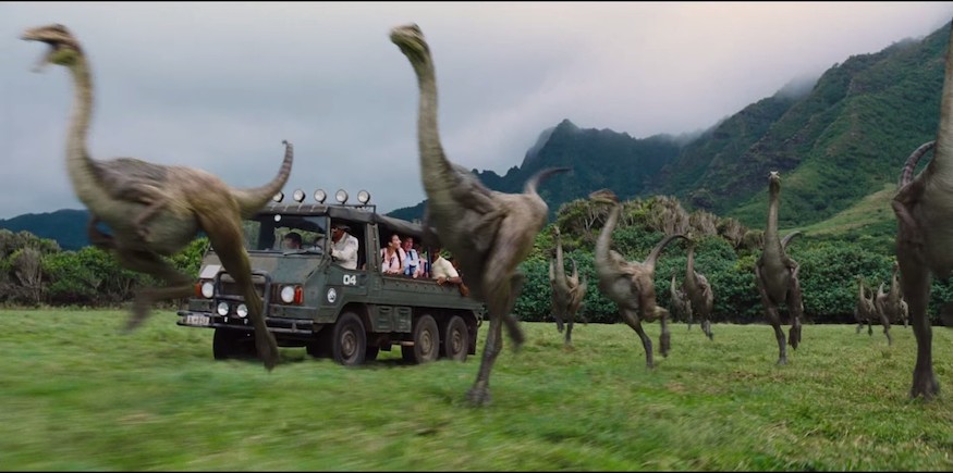 En el vídeo aparecen las escenas del teaser -que vimos hace unos días-, con los gallimimus corriendo y los niños viendo saurópodos -dinosaurios de cuello largo-. Además, Chris Pratt amaestra velocirraptores.
