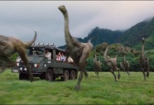 En las imágenes, Chris Pratt amaestra velocirraptores y un mosasaurio devora un tiburón blanco.